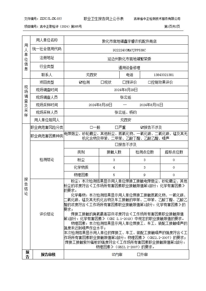2024检测085_敦化市官地镇鑫宇睿农机配件商店