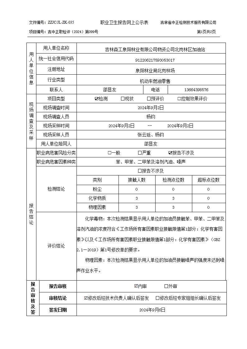 2024检测099_吉林森工泉阳林业有限公司物资公司北岗林区加油站