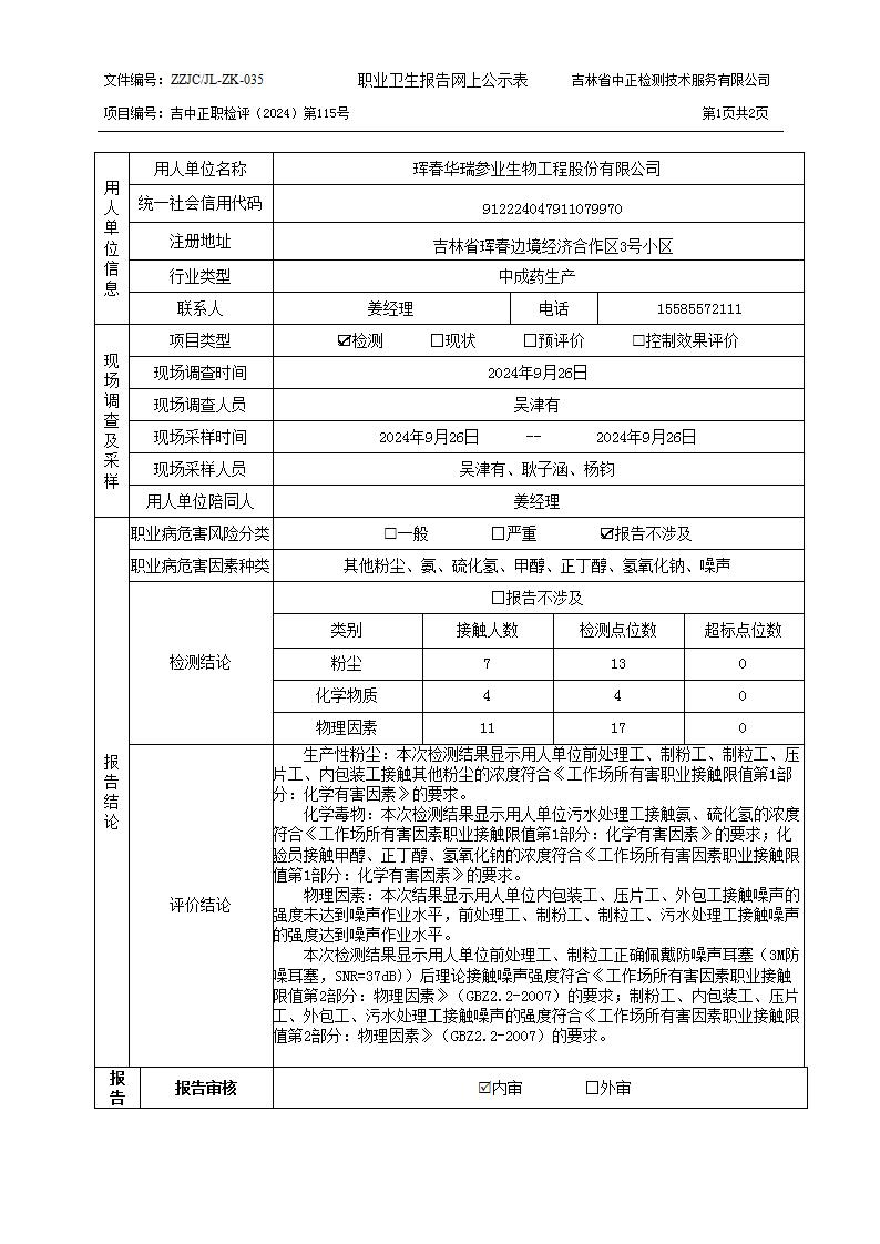 2024检测115_珲春华瑞参业生物工程股份有限公司