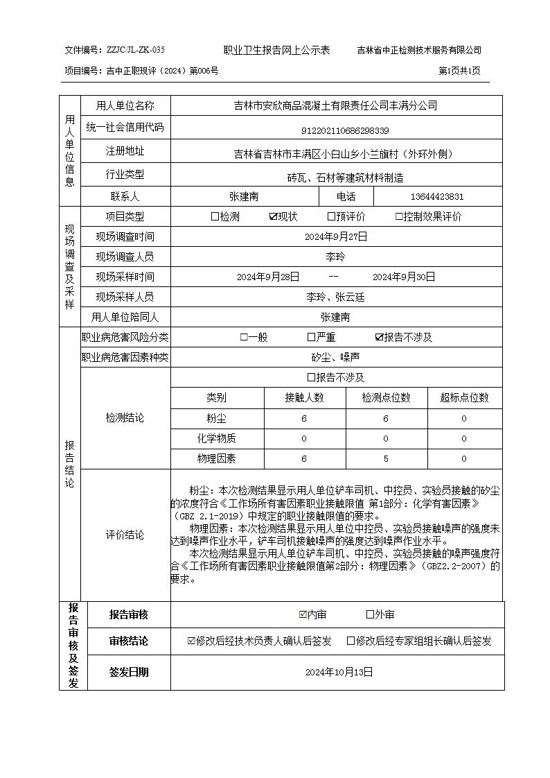 2024现评006_吉林市安欣商品混凝土有限责任公司丰满分公司