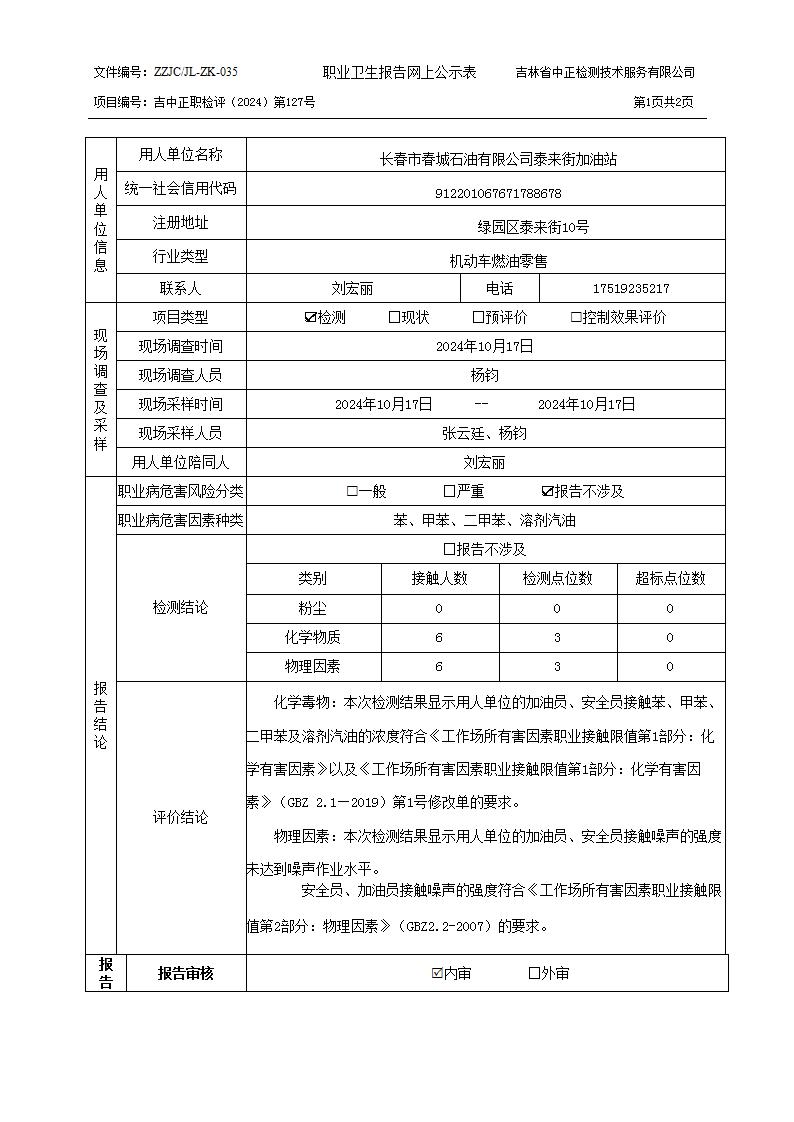 2024检测127_长春市春城石油有限公司泰来街加油站