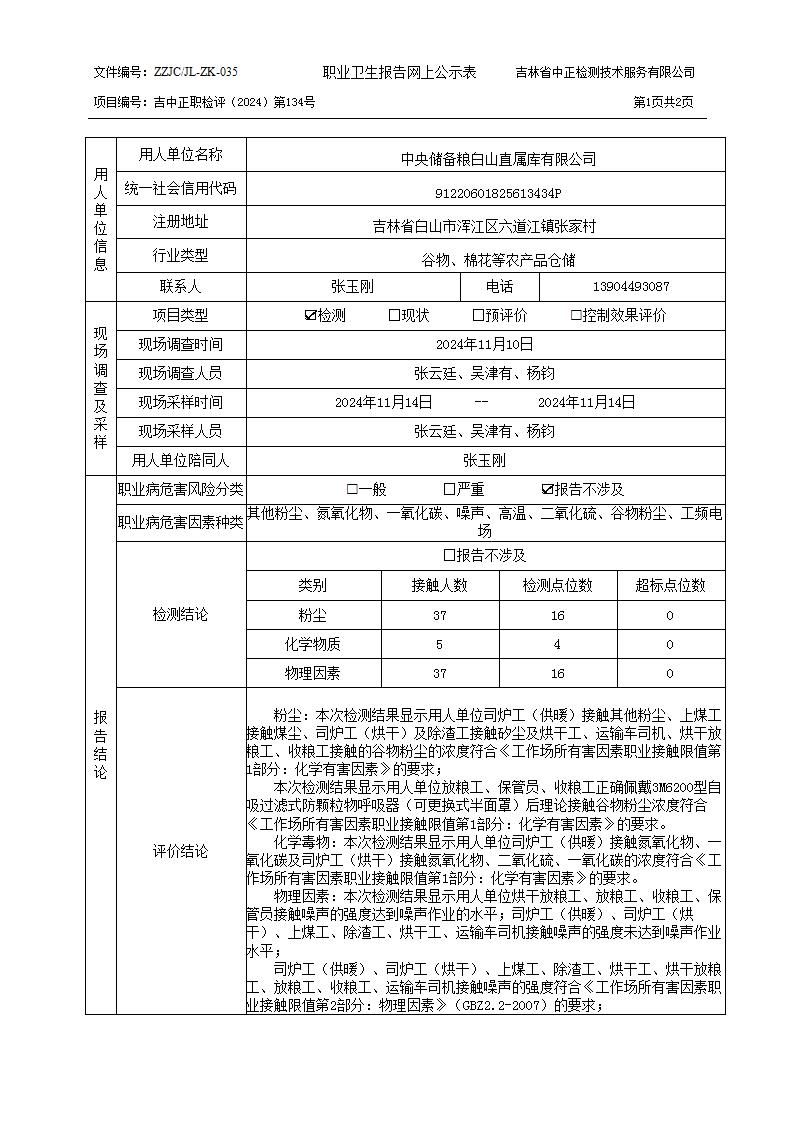 2024检测134_中央储备粮白山直属库有限公司