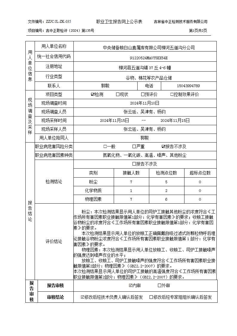2024检测135_中央储备粮白山直属库有限公司柳河五道沟分公司