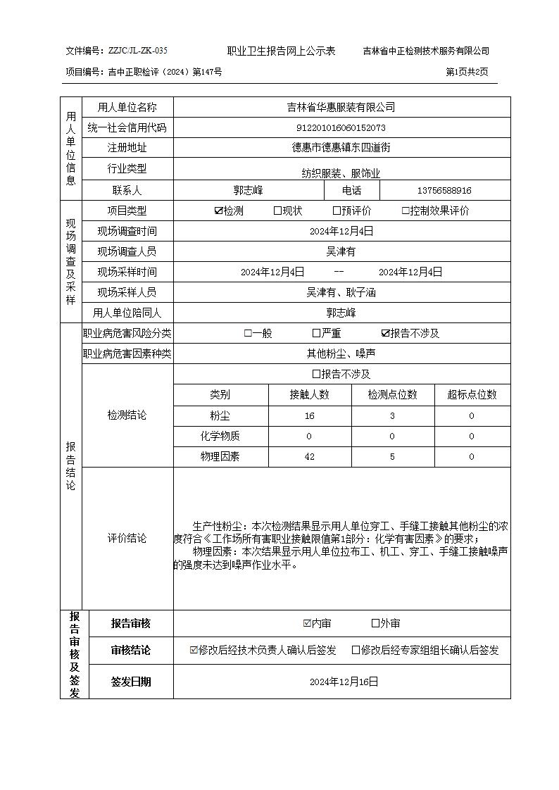 2024检测147_吉林省华惠服装有限公司