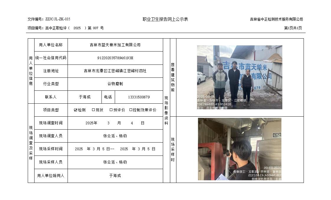 2025检测007_吉林市蓝天粮米加工有限公司