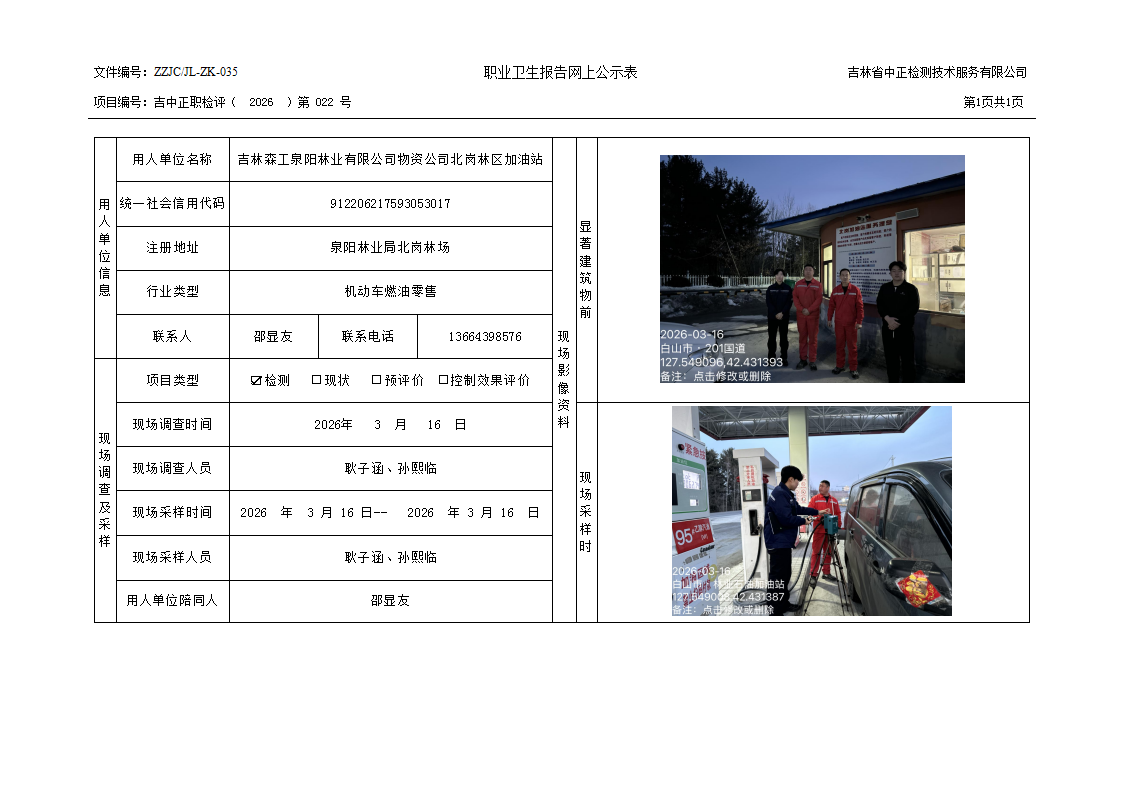2026检测022_吉林森工泉阳林业有限公司物资公司北岗林区加油站