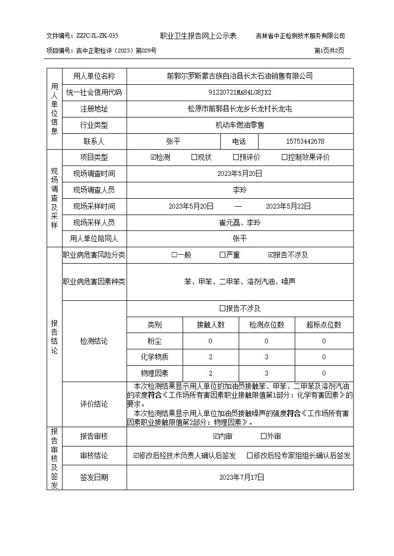 检测029_ 前郭尔罗斯蒙古族自治县长太石油销售有限公司