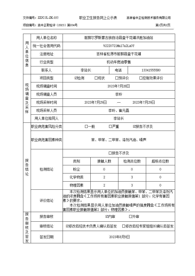 检测034_前郭尔罗斯蒙古族自治县查干花镇洪胜加油站