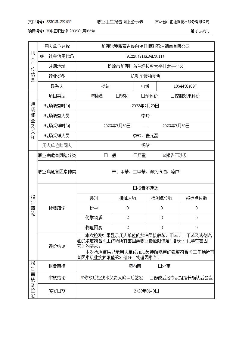 检测036_ 前郭尔罗斯蒙古族自治县顺利石油销售有限公司