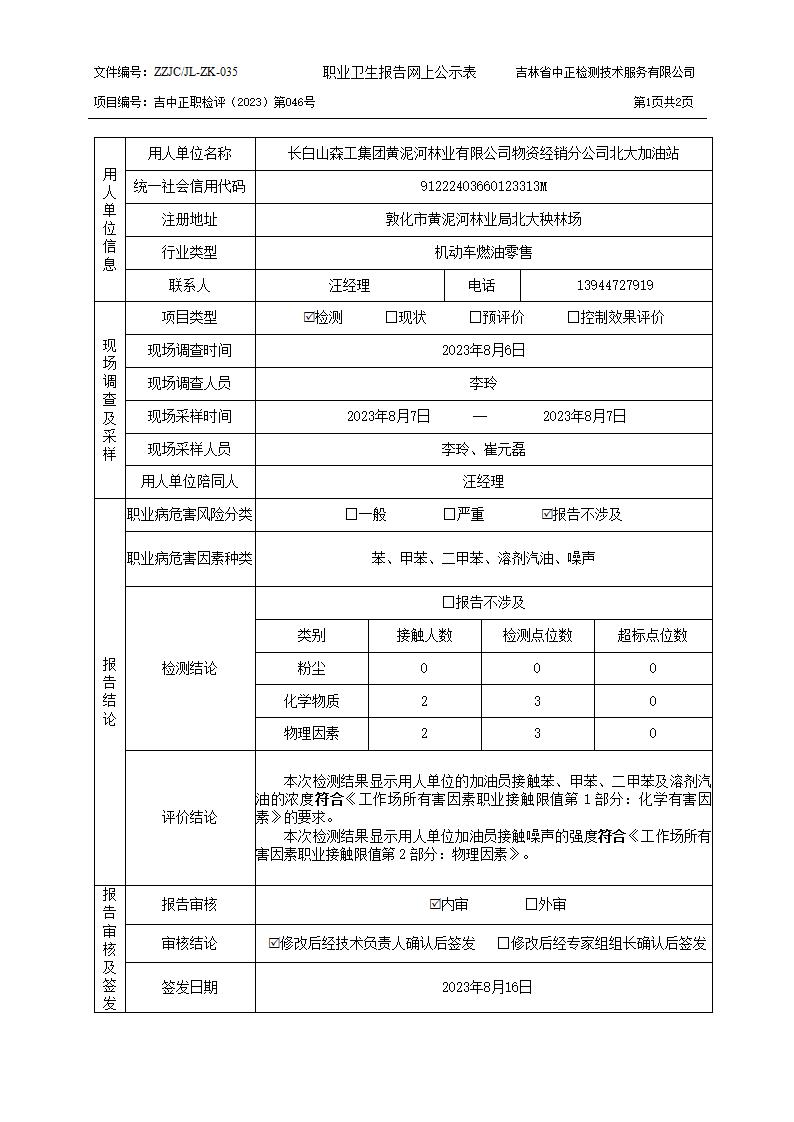 检测046_长白山森工集团黄泥河林业有限公司物资经销分公司北大加油站