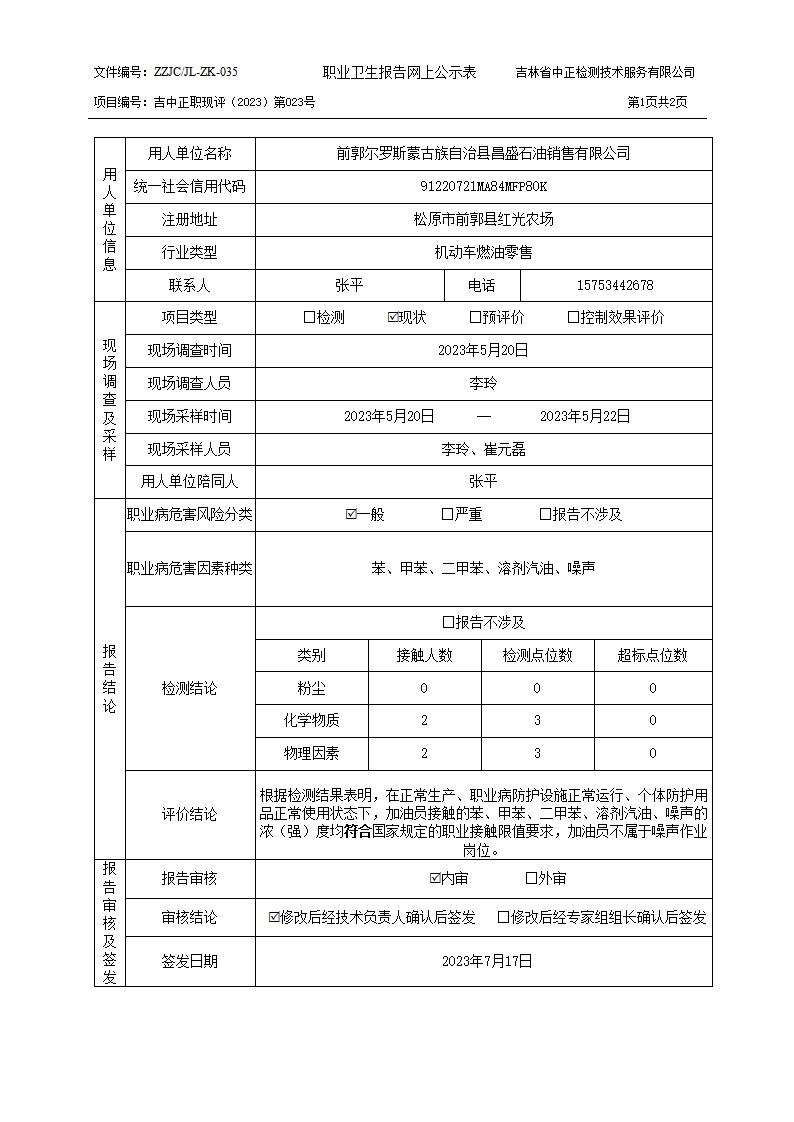 现评023_前郭尔罗斯蒙古族自治县昌盛石油销售有限公司