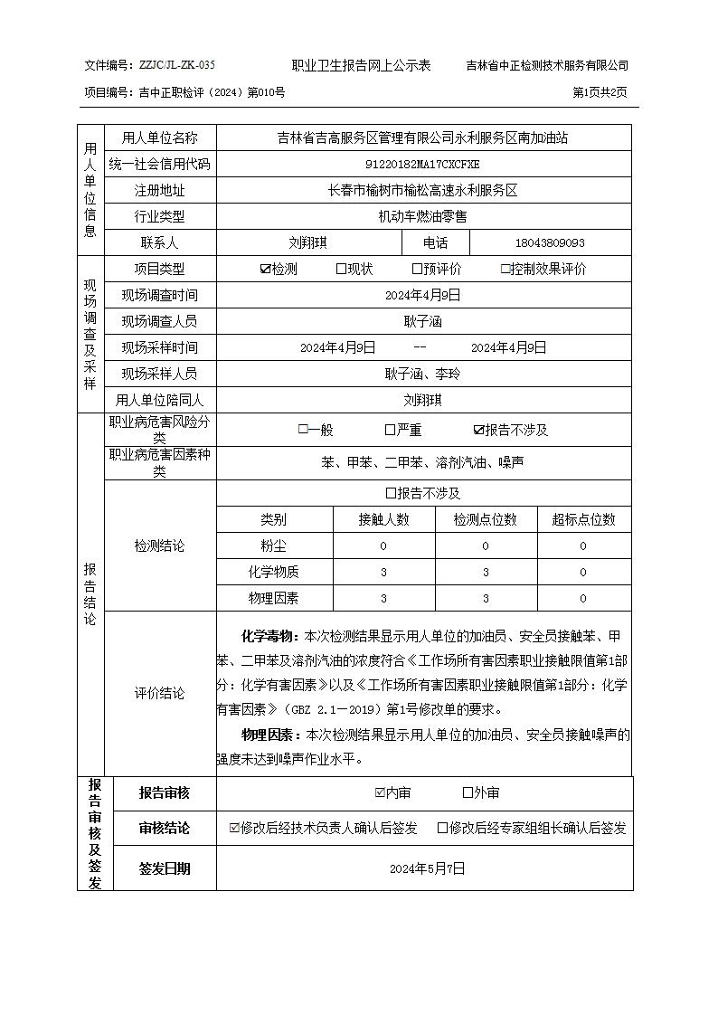 2024检测010_吉林省吉高服务区管理有限公司永利服务区南加油站