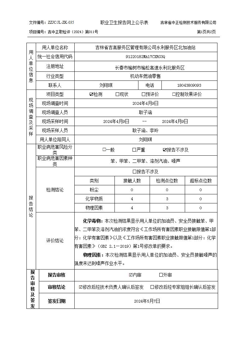 2024检测011_吉林省吉高服务区管理有限公司永利服务区北加油站