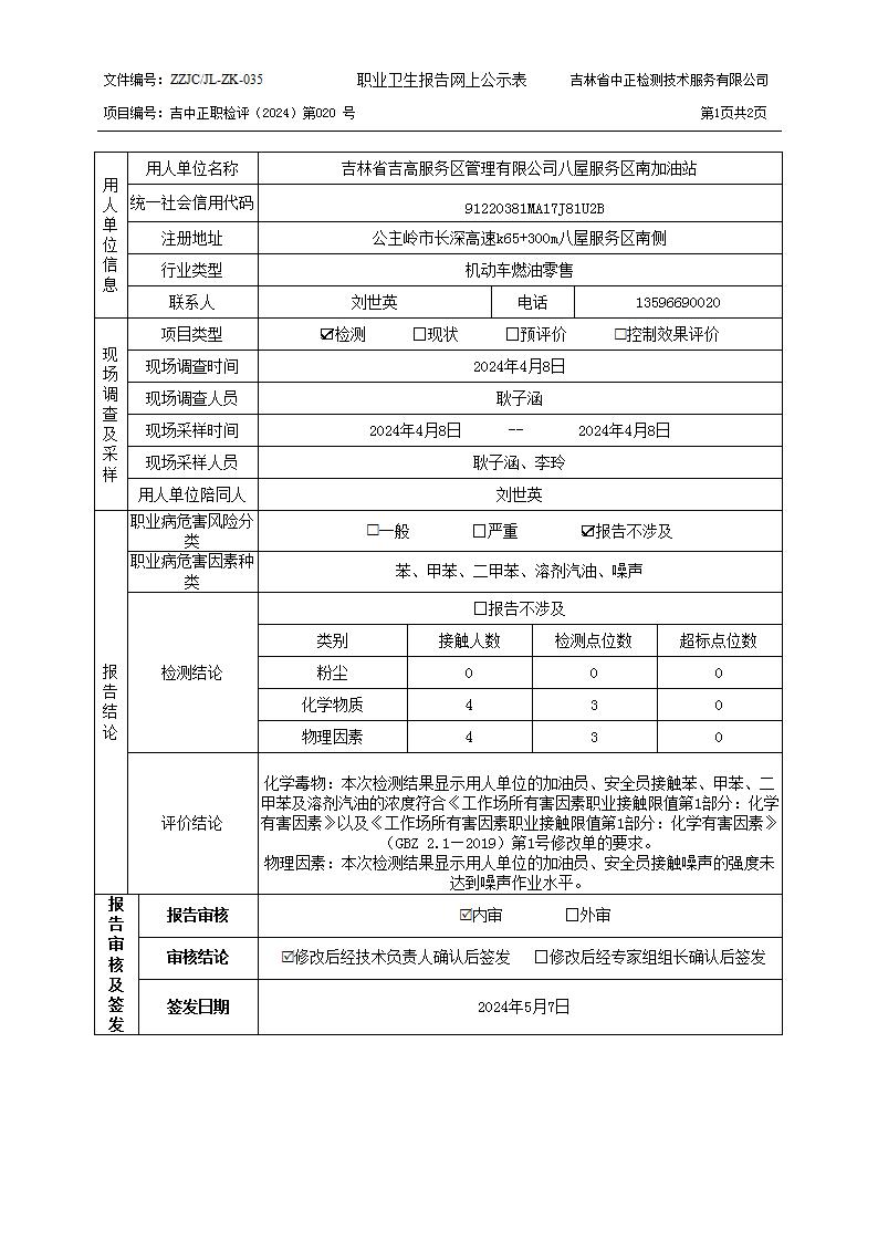 2024检测020_吉林省吉高服务区管理有限公司八屋服务区南加油站