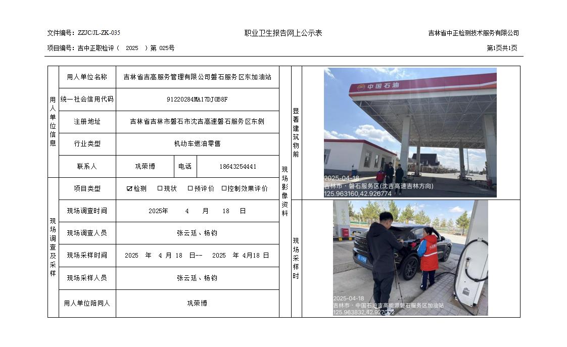 2025检测025_吉林省吉高服务管理有限公司磐石服务区东加油站