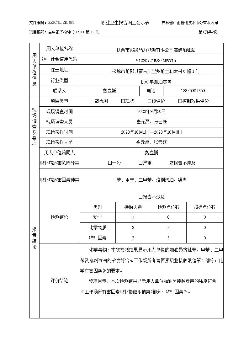 检测063_扶余市超级马力能源有限公司高娃加油站