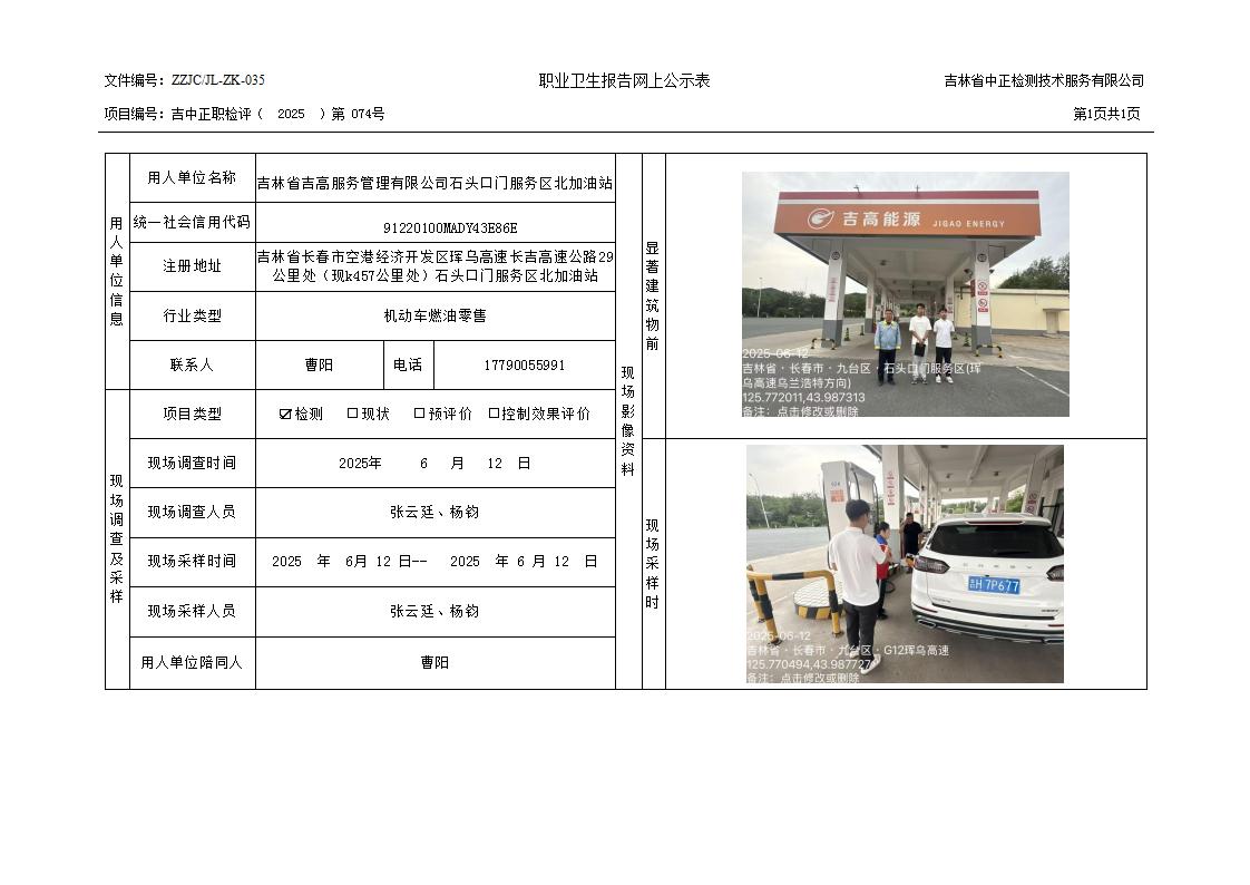 2025检测074_吉林省吉高服务管理有限公司石头口门服务区北加油站