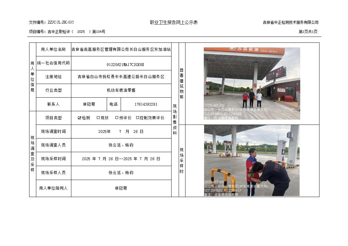 2025检测104_吉林省吉高服务区管理有限公司长白山服务区东加油站