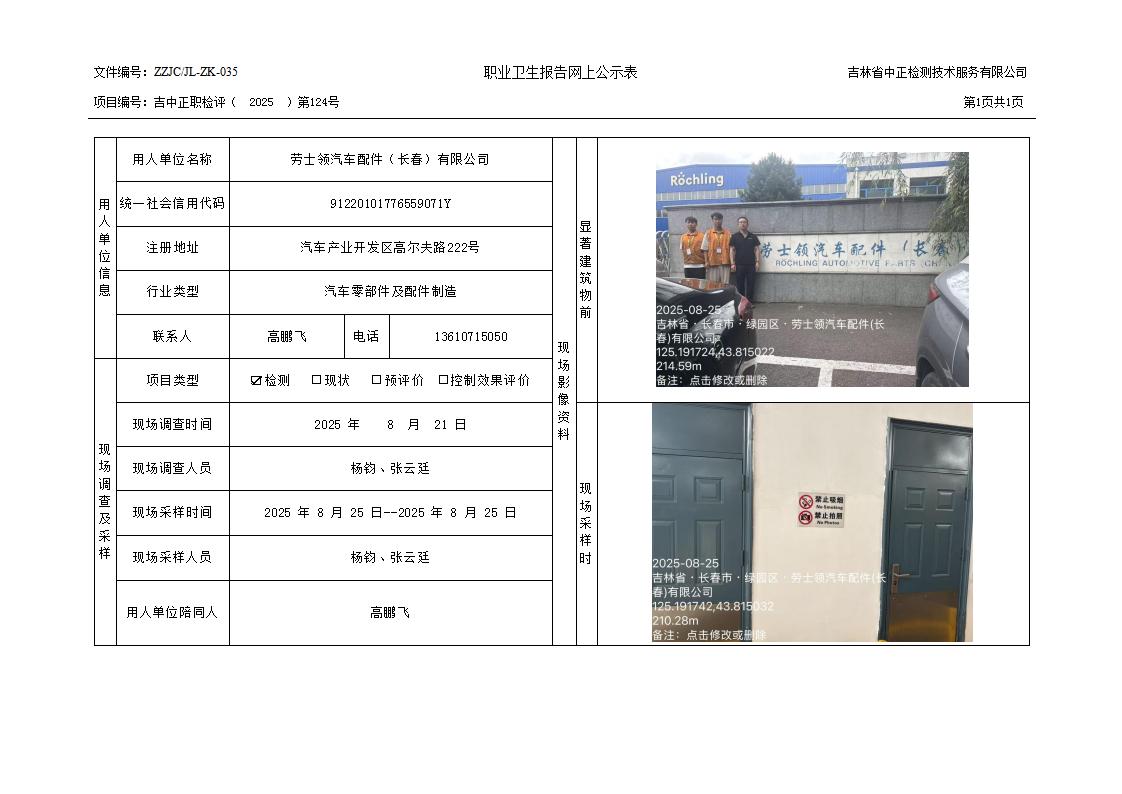 2025检测124_劳士领汽车配件(长春)有限公司