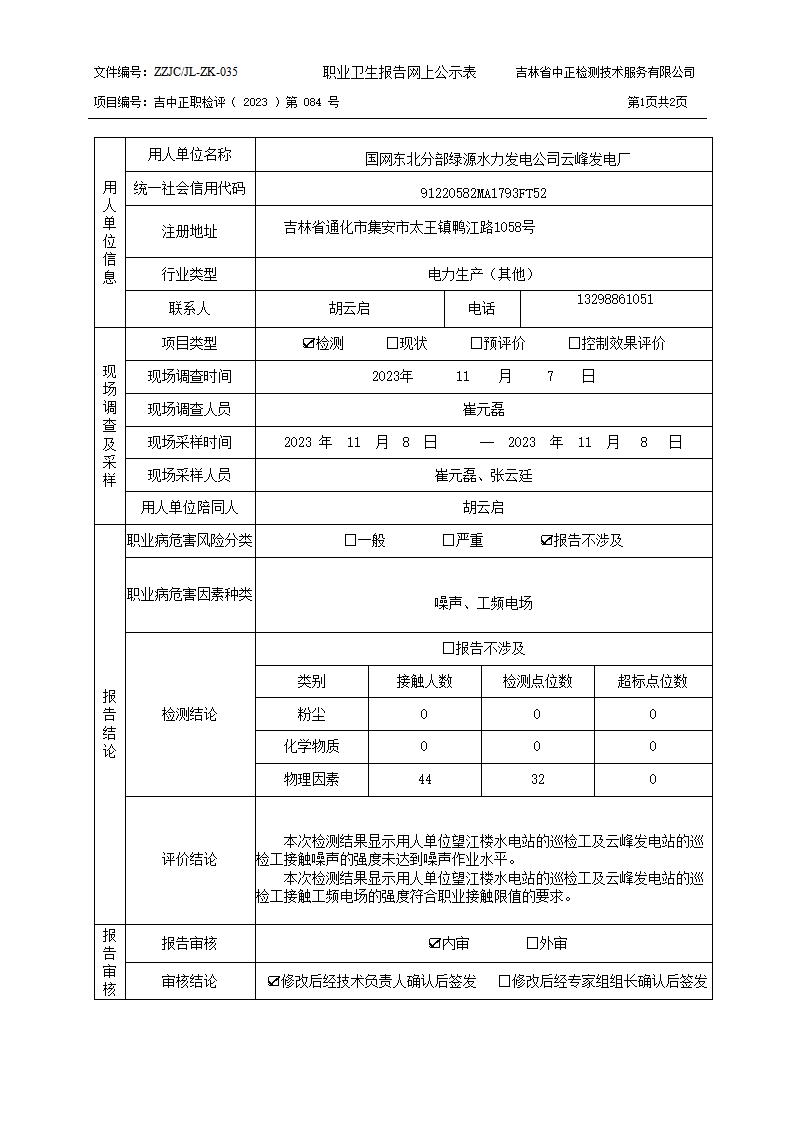 检测084_国网东北分部绿源水力发电公司云峰发电厂