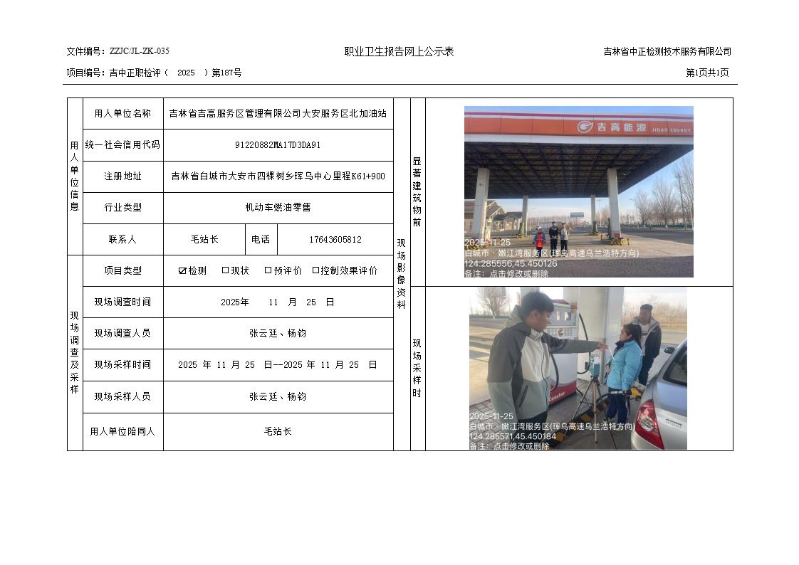 2025检测187_吉林省吉高服务区管理有限公司大安服务区北加油站