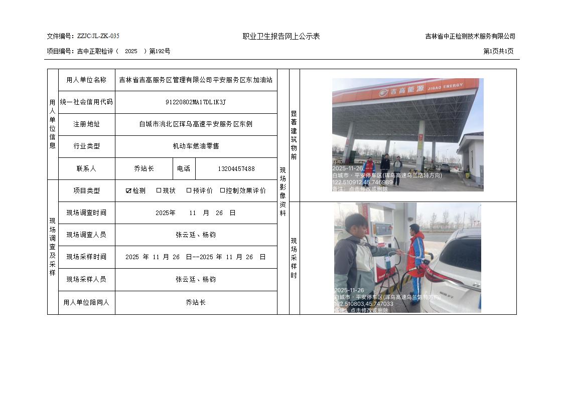 2025检测192_吉林省吉高服务区管理有限公司平安服务区东加油站