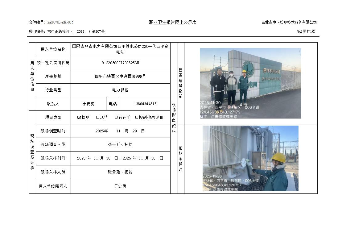 2025检测207_国网吉林省电力有限公司四平供电公司220千伏四平变电站