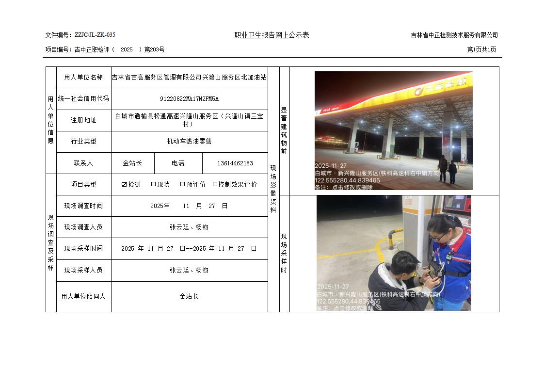 2025检测203_吉林省吉高服务区管理有限公司兴漋山服务区北加油站
